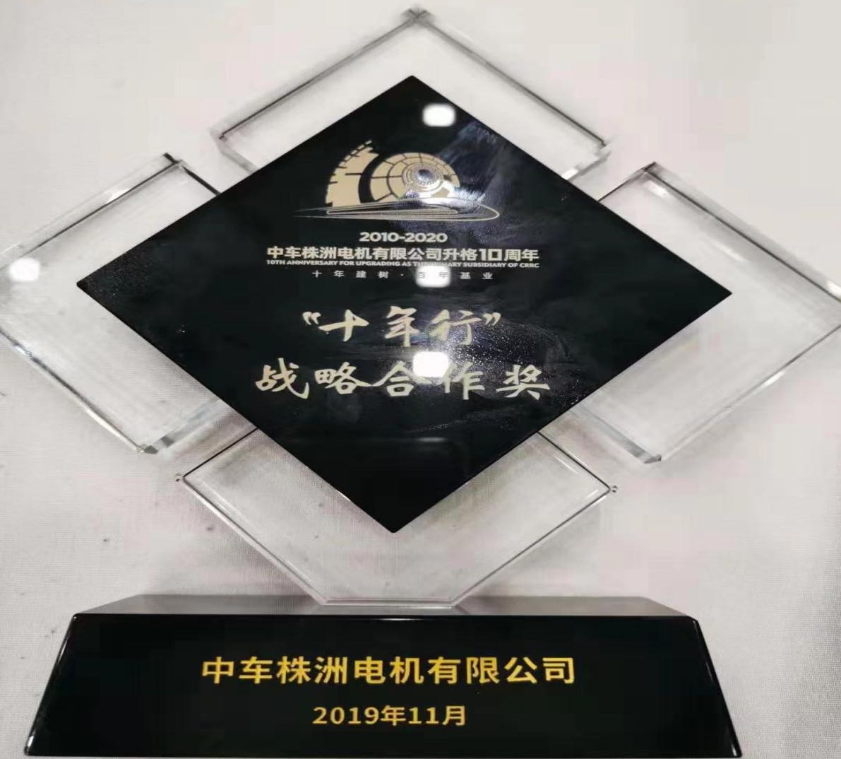 兆源機電榮獲中車株洲電機公司“十年行”戰(zhàn)略合作獎